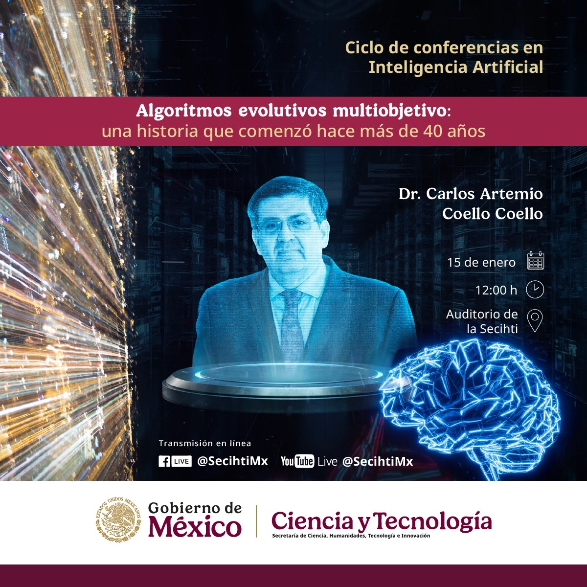 ![]() Liga de transmisión: https://bit.ly/4qf6JpM Síntesis: La Secretaría de Ciencia, Humanidades, Tecnología e Innovación (Secihti) invita a seguir la primera sesión del ciclo de conferencias de inteligencia artificial, denominada “Algoritmos evolutivos multiobjetivo: una historia que comenzó hace más de 40 años”, impartida por el investigador en el Departamento de Computación del Centro de Investigación y de […] | ||||||