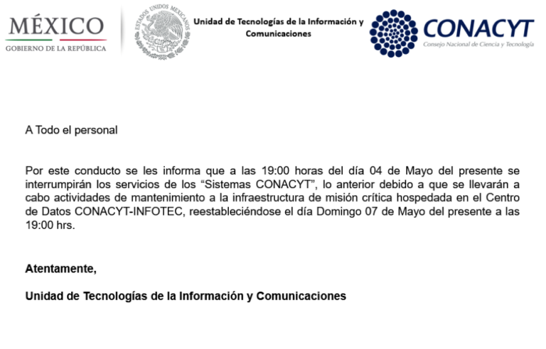 A los participantes en la convocatoria 2017-1 del Fondo Sectorial de Investigación para el Desarrollo Aeroportuario y la Navegación Aérea que tuvieron problemas los días 5 y 6 de mayo para el envío de sus propuestas: